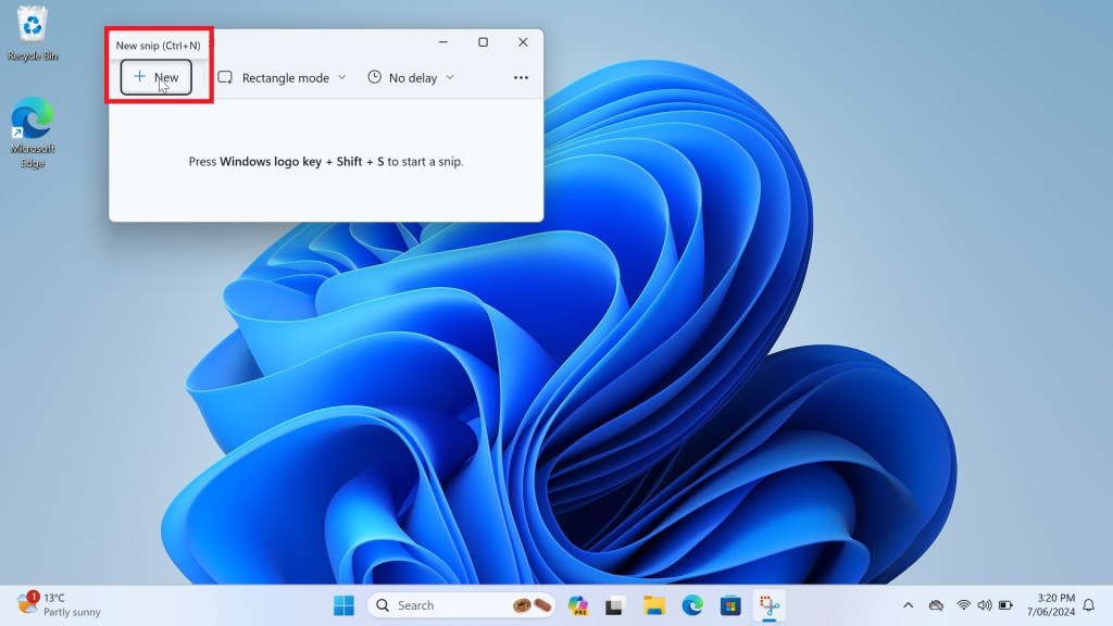 The Snipping Tool window will open. Click the New button in the top left of the window to begin taking a screenshot.