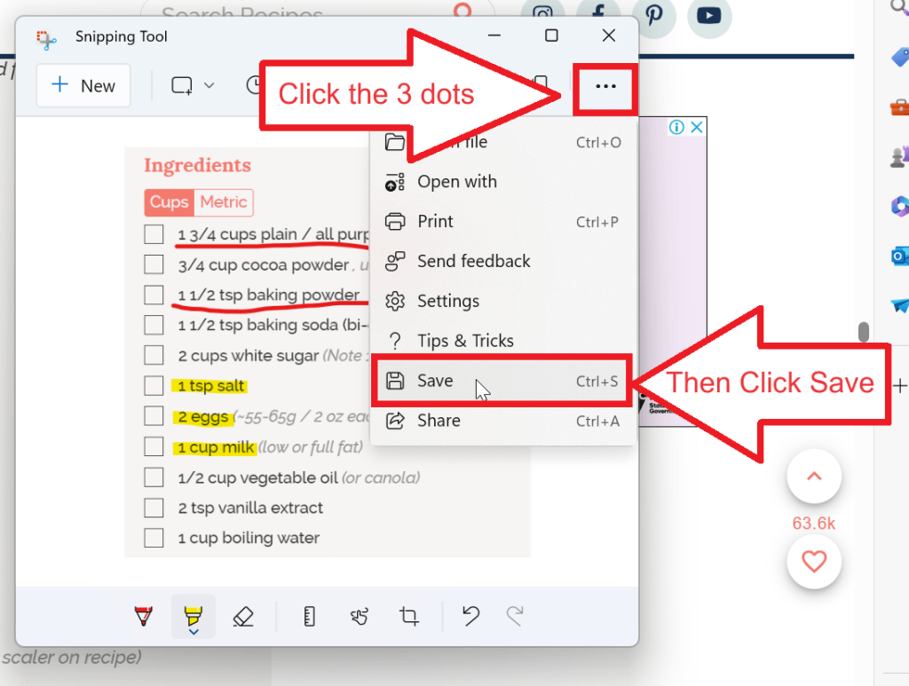If your window is smaller, click the 3 dots in the top right of the window, then select Save.